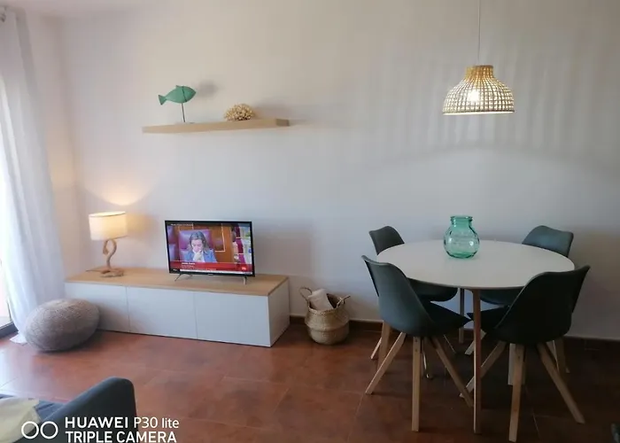 Die Ferienwohnung Riells Playa L' Escala ist circa 25 Minuten von der Bucht La Cala entfernt gelegen. Dieses am Strand Apartment bietet einer Terrasse mit einem Ausblick aufs Meer und liegt 650 Meter vom Strand Platja de Riells.